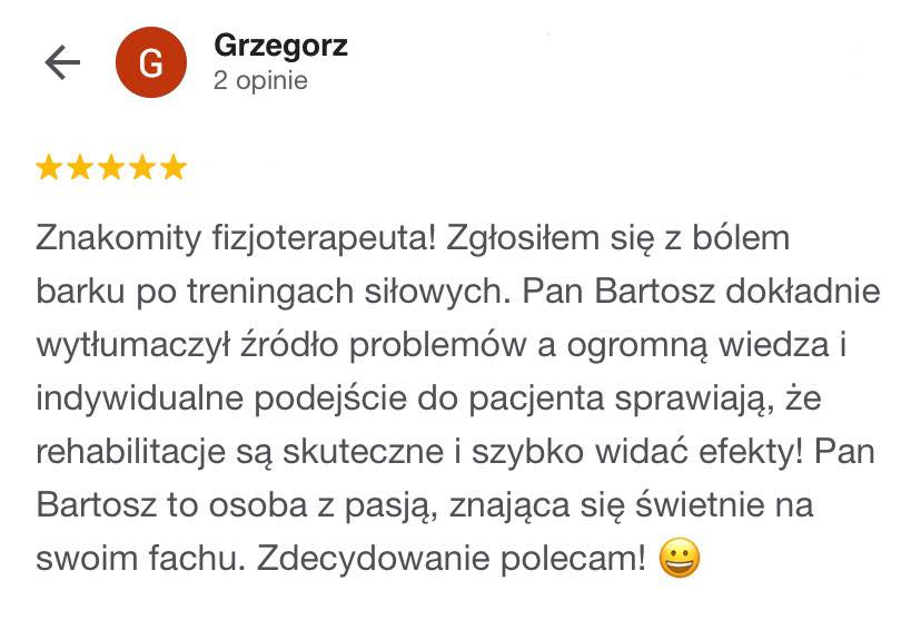W naszym Studio Fizjoterapii w Wysogotowie blisko Skórzewa i Przeźmierowa pomagamy osobom, które doznały urazu barku. Oto opinie osób, którym pomogliśmy.